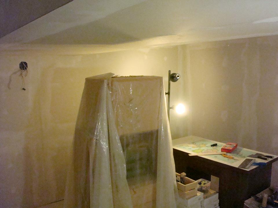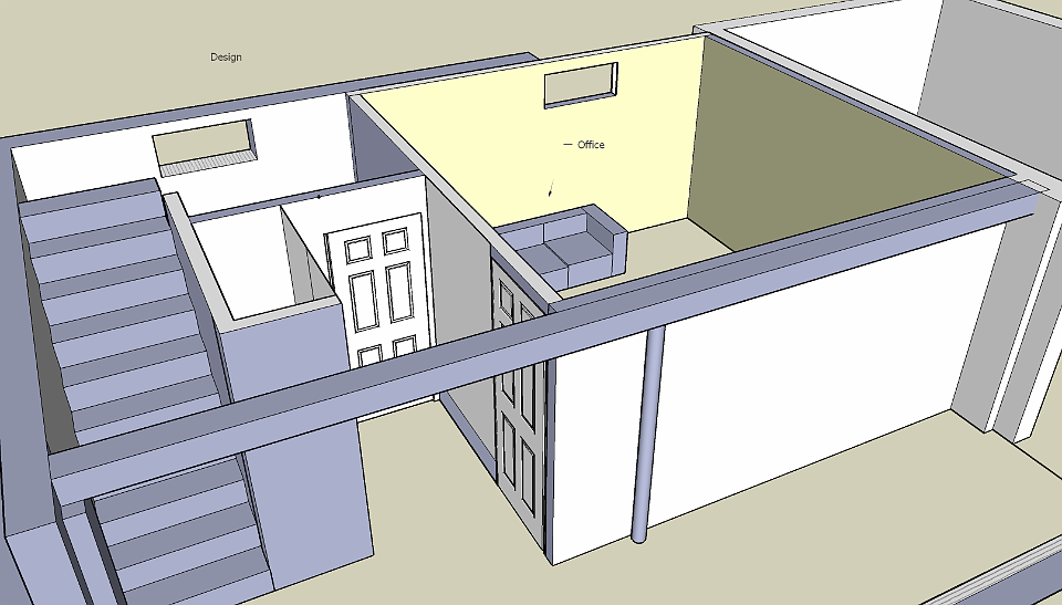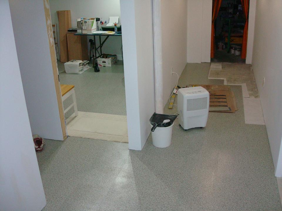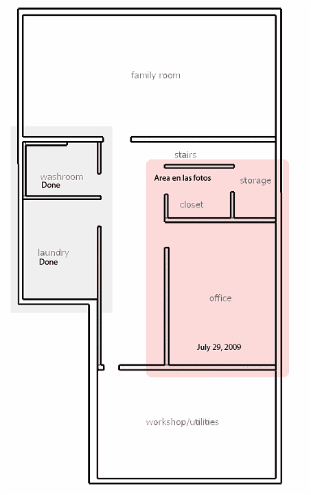 Renovacion del area principal para la oficina que adjunto esta el closet y cuarto de almacenaje ademas del piso exterior que da a la lavanderia, baño y cuarto de utilidades.